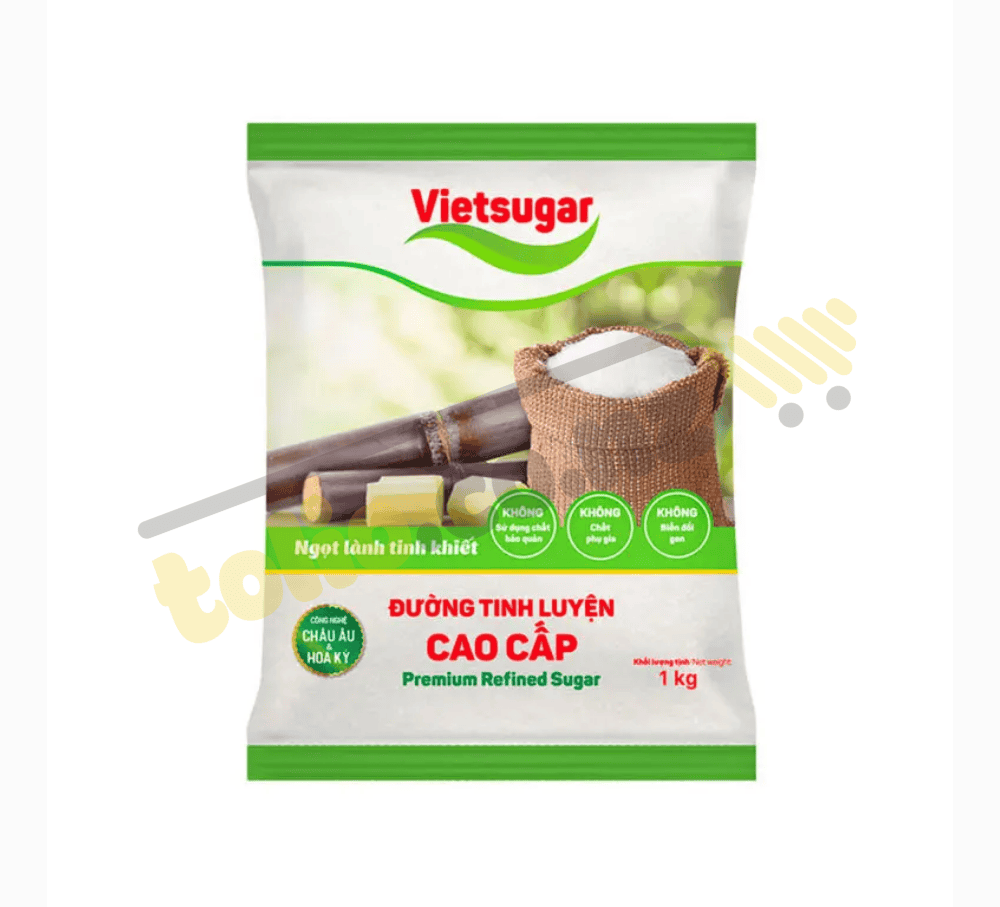 Vietsugar Road Packed safely, hygienically, convenient for use and storage. Vietsugar premium refined sugar 1kg pack is distilled from the essence of 100% cane sugar, with a production process using strict European and American technology.
