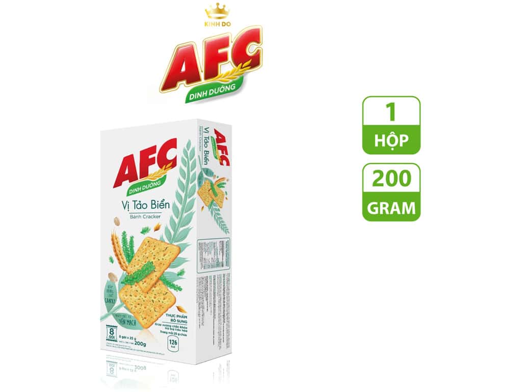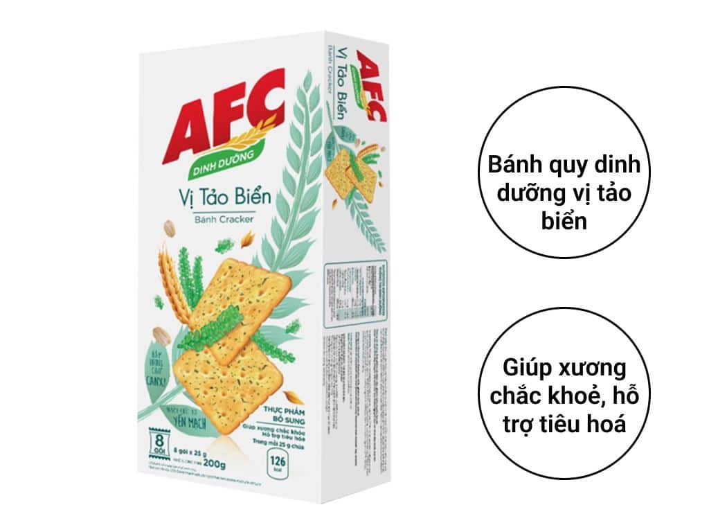 Bánh AFC vị tảo biển hộp 200g (8 gói 25g) Bánh quy dinh dưỡng, thơm ngon. Bánh cracker vị tảo biển AFC Dinh Dưỡng hộp 200g cung cấp năng lượng cho bạn hoạt động ngày dài. Bánh quy AFC là thương hiệu lớn, cho chúng ta yên tâm sử dụng và tin dùng