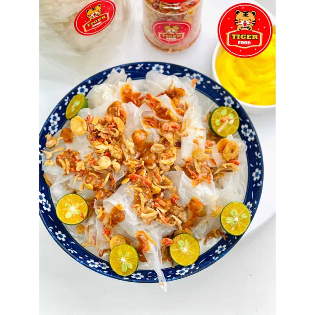Bánh tráng muối sặc sốt tắc chua ngọt 700g có nguyên liệu: bánh tráng, và các loại gia vị