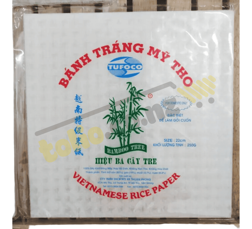Bánh tráng vuông 22cm 340g Ba Cây Tre Sản phẩm được sản xuất theo quy trình hiện đại khép kín, đạt các tiêu chuẩn xuất khẩu nhiều nước trên thế giới trong đó có các thị trường khó tính nhất như : Hoa Kỳ, Nhật Bản, Hàn Quốc, Úc, Canada, và các nước thuộc khu vực Châu Âu.