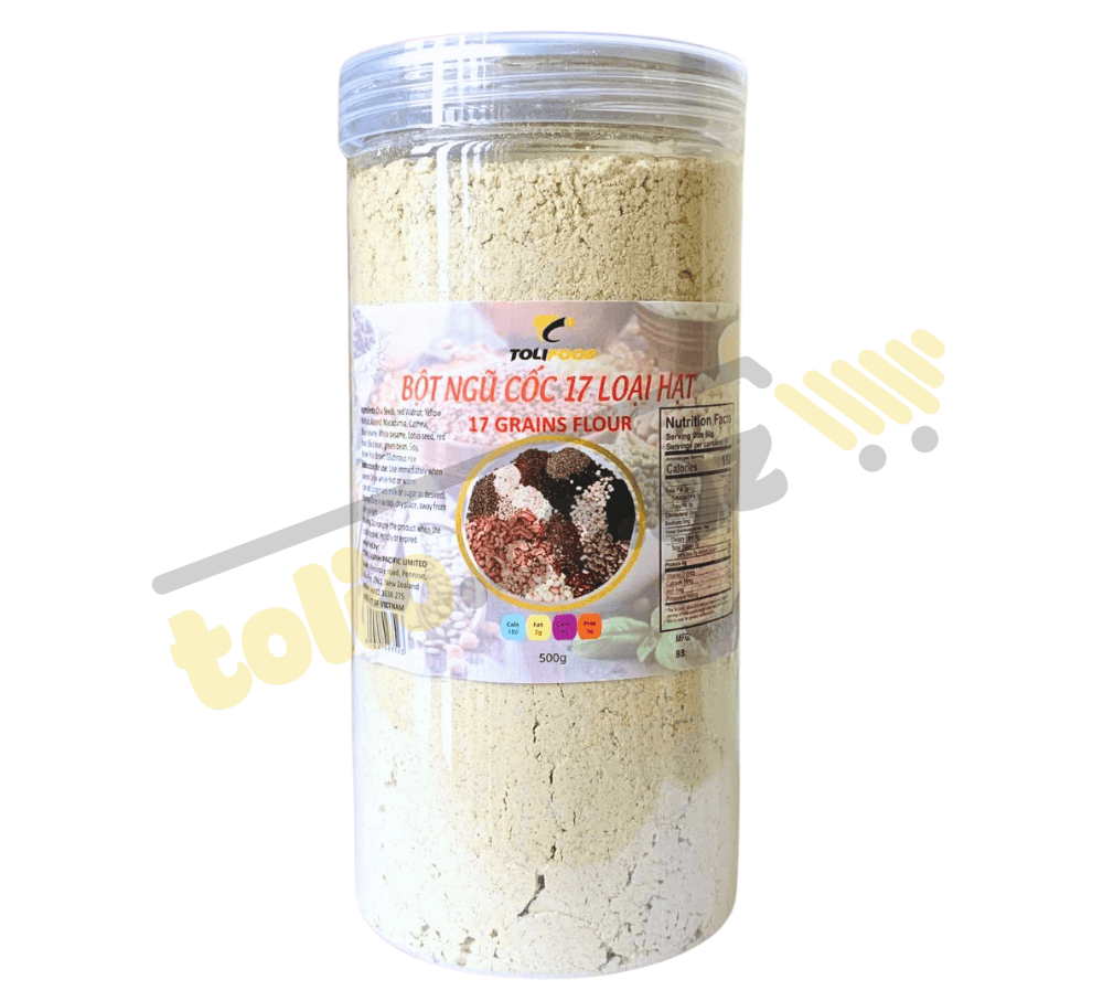 Bột ngũ cốc dinh dưỡng 17 loại hạt 500g với thành phần gồm 17 loại hạt: hạt chia, óc chó đỏ, óc chó vàng, hạnh nhân, macca, yến mạch, điều, mè đen, mè trắng, hạt sen, đậu xanh, đậu đỏ, đậu đen xanh lòng, đậu trắng, đậu nành, gạo lức, huyết rồng, nếp lức.. phù hợp dùng cho mọi thành viên trong gia đình từ người lớn đến trẻ em.