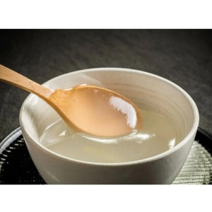 - Cho 1 muỗng canh bột sắn dây vào 2 muỗng nước, khuấy lên để bột sắn không bị vón cục, sau đó cho nước sôi vào, khuấy đều cho đến khi thấy bột trong là chín.