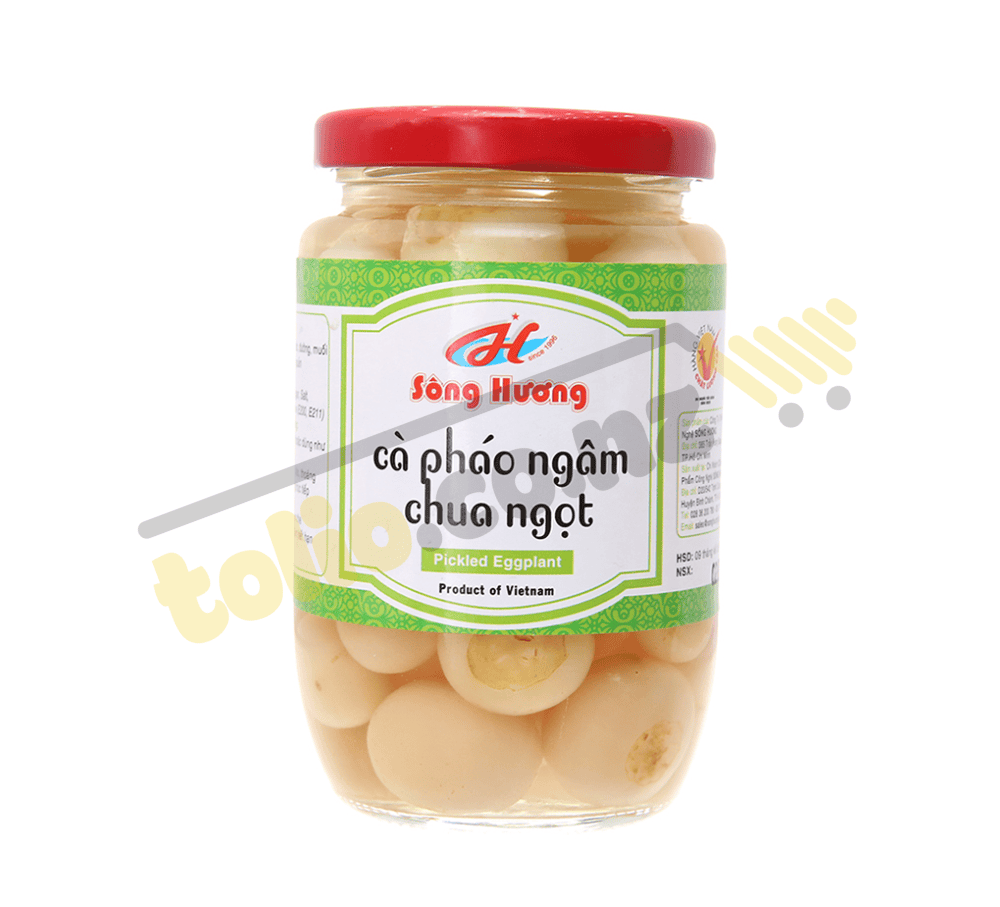 Cà pháo ngâm chua ngọt Sông Hương hũ 370g được làm theo công thức truyền thống của người Việt từ những nguyên liệu tự nhiên, trên dây chuyền đạt tiêu chuẩn quốc tế từ thương hiệu đồ chua Sông Hương. Cà pháo muối ngâm chua ngọt Sông Hương thích hợp để ăn kèm trong các bữa ăn, là món ăn truyền thống của người Việt Nam