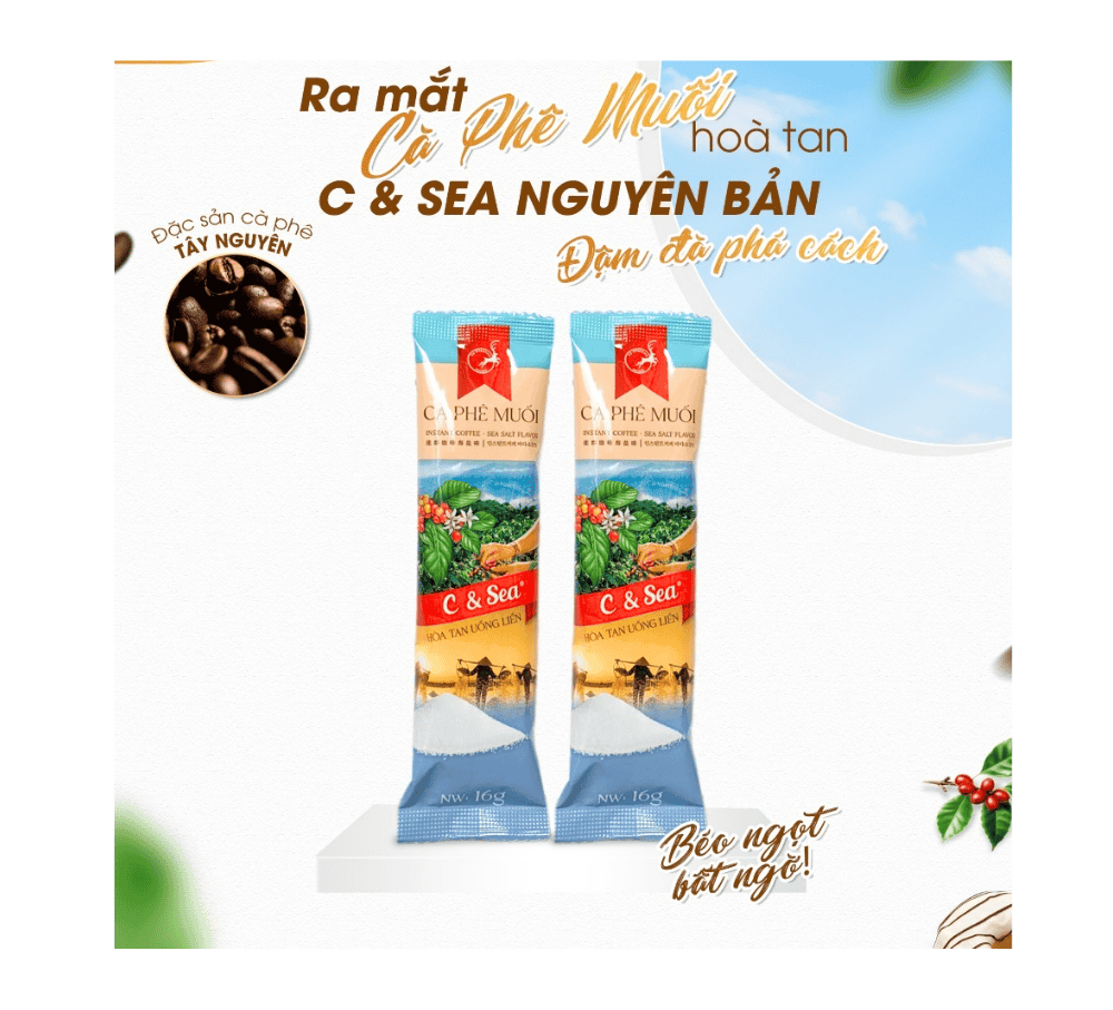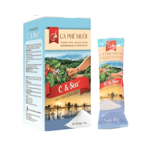 Cà phê muối hòa tan C & Sea hộp giấy 160g là sự pha trộn tuyệt vời giữa hương vị cà phê đậm đà của núi rừng Tây Nguyên và hương mặn mà của muối biển Nha Trang. Sản phẩm mang đến trải nghiệm độc đáo với vị thơm và ngậy của milk foam (lớp kem có vị mặn mặn beo béo), một lớp bọt sữa mịn màng được tạo ra bằng công nghệ tiên tiến.