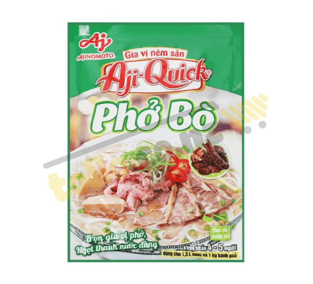 Gia vị nêm sẵn nấu phở bò Aji-Quick gói 57g tiện lợi, đến từ thương hiệu gia vị nêm sẵn Aji-Quick. Gia vị nêm sẵn nấu phở bò Aji-Quick gói 57g với chiết xuất thịt bò cùng các loại gia vị quen thuộc, giúp các bà nội trợ có thể chế biến món phở bò cho cả gia đình một cách nhanh chóng với hương vị đậm đà.