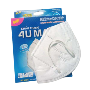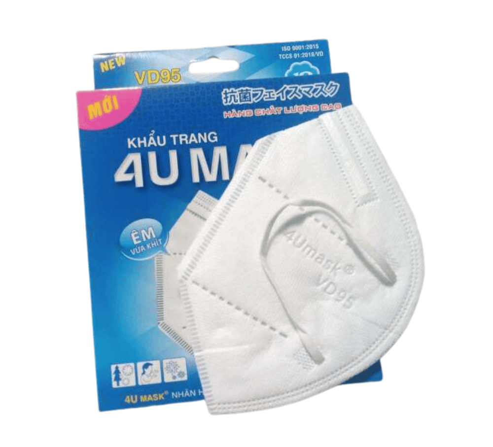 Khẩu trang y tế 4U mask VD95 hộp 10 cái được cấu tạo bởi 3 lớp vải không dệt (PP Nonwonven Fabric) và 1 lớp màng lọc kháng khuẩn với tính năng không thấm nước và thoáng khí, thoải mái khi dùng và không gây kích ứng da.