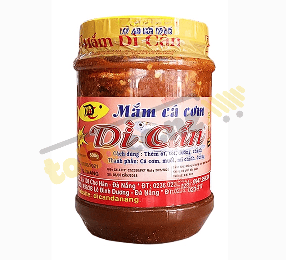 Mắm cá cơm Dì Cẩn hủ 500gr được muối từ cá cơm nguyên con và muối trắng hột theo công thức bí truyền, tạo nên hương vị thơm ngon đặc trưng. Mắm cá cơm là niềm tự hào của người dân Đà Nẵng nói riêng và của người dân miền trung nói chung, là gia vị không thể thiếu trong bữa ăn của từng gia đình.