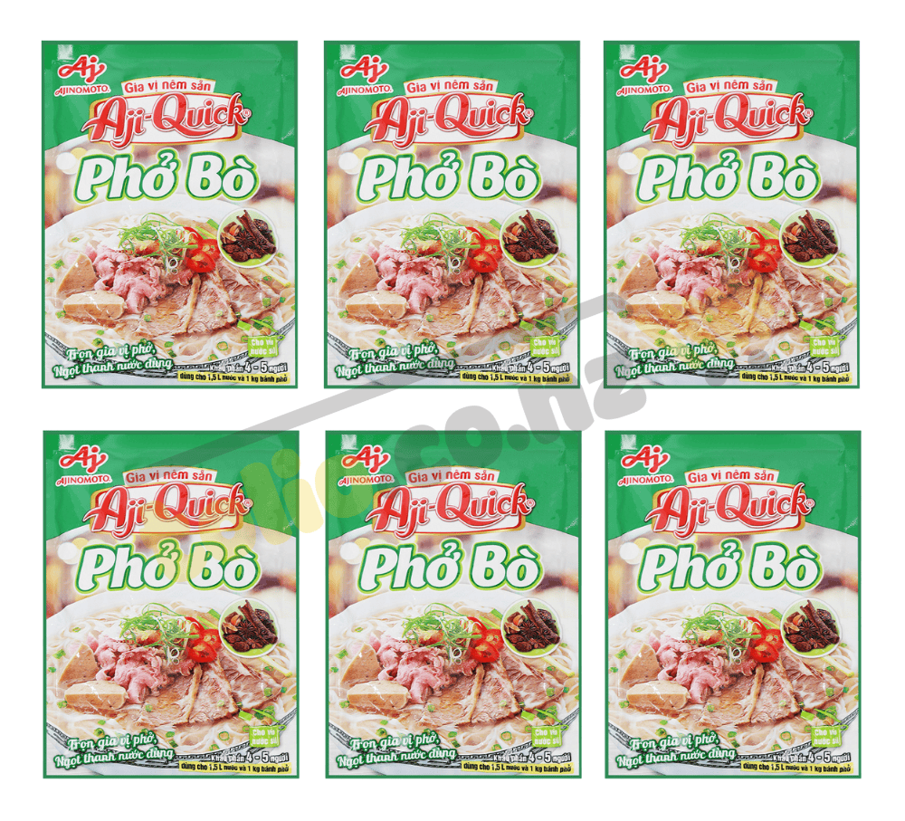 Gia vị nêm sẵn nấu phở bò Aji-Quick gói 57g tiện lợi, đến từ thương hiệu gia vị nêm sẵn Aji-Quick. Gia vị nêm sẵn nấu phở bò Aji-Quick gói 57g với chiết xuất thịt bò cùng các loại gia vị quen thuộc, giúp các bà nội trợ có thể chế biến món phở bò cho cả gia đình một cách nhanh chóng với hương vị đậm đà.