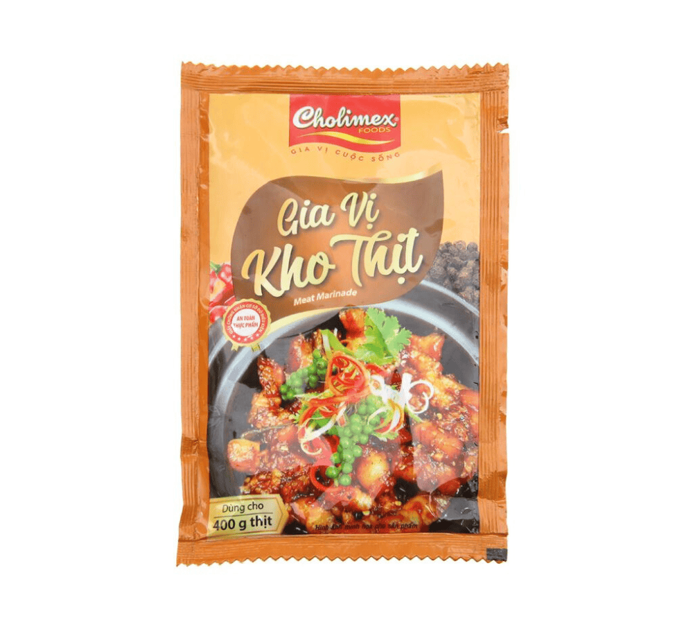 Xốt gia vị kho thịt Cholimex gói 50g là sản phẩm rất tiện dụng cho các món thịt kho vì tổng hợp đủ các gia vị như nước mắm, tỏi, hành, đường, muối, bột ngọt, nước màu, tiêu. Xốt gia vị kho thịt Cholimex chỉ với 1 lượng gia vị kho thịt vừa đủ, sẽ có nồi thịt kho thơm ngon, đậm đà.