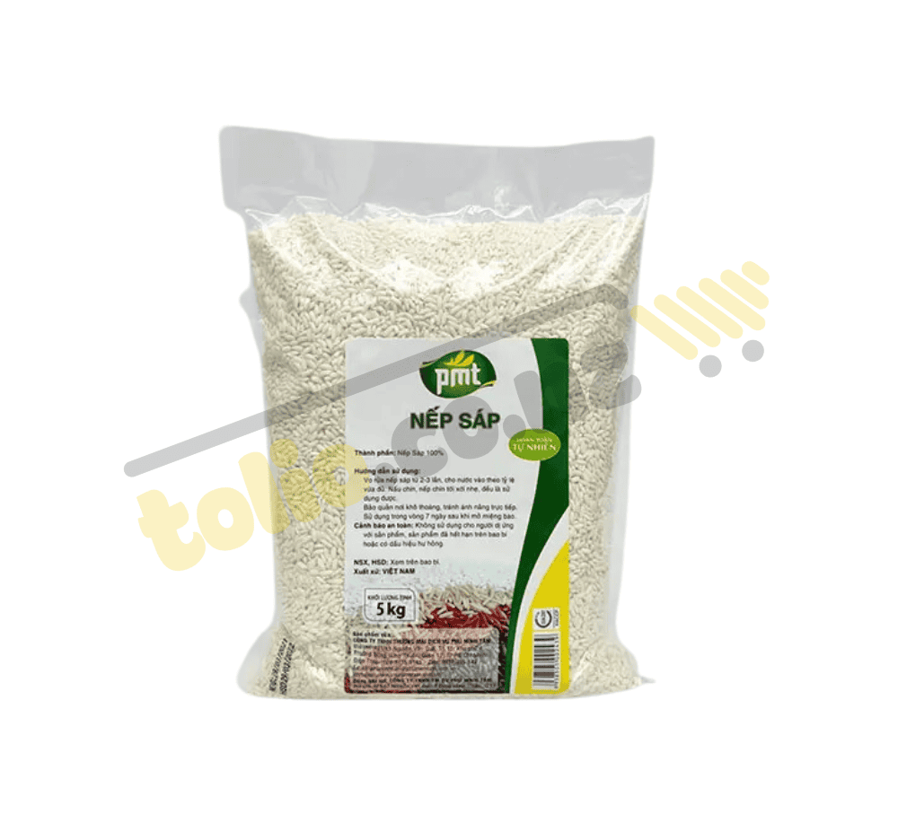 Nếp sáp PMT 5kg Nếp Sáp là một loại nếp đặc sản của vùng Đồng Tháp Mười với đặc tính: Hương vị tự nhiên, thơm nhiều. Với 100% hạt nguyên vẹn, đều đặn, khô, không có khuyết tật do hư hỏng.
