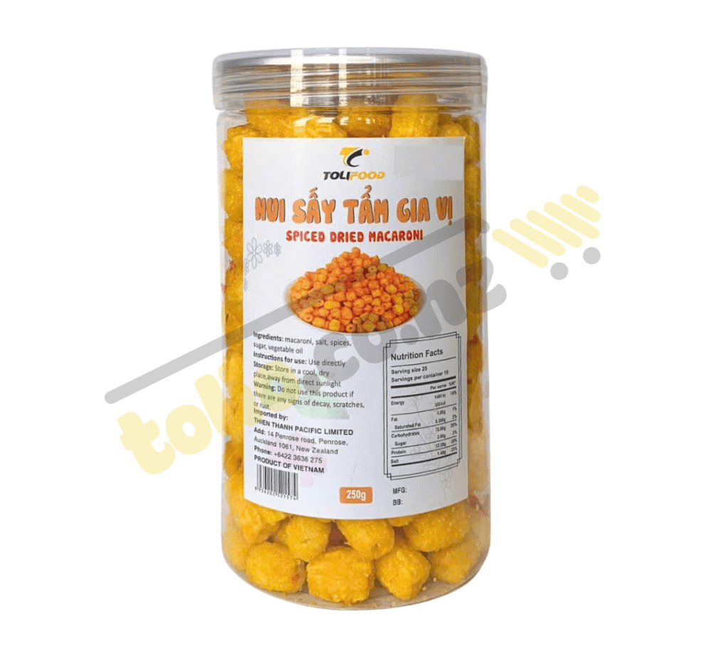 Nui sấy Viettin Mart 250g là món ăn lấy ý tưởng từ món nui xào ngon thơm phức. Với nguyên liệu nui sấy và tẩm ướp các gia vị nhằm tạo ra món ăn có màu sắc và hương vị hài hòa. Nui sấy có vị mặn giòn như bánh snack, mùi vị mặn ngọt cay khó quên.