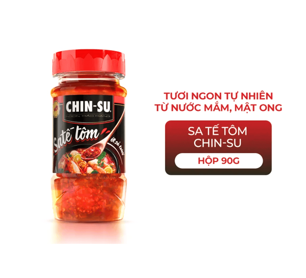 Sa tế tôm Chinsu sả ớt hũ 90g làm từ nguyên liệu tôm, ớt , sả tươi sạch với vị cay thơm nồng mang lại hương vị hấp dẫn, màu sắc bắt mắt cho món ăn. Sa tế Chinsu là thương hiệu sa tế chất lượng, đảm bảo vệ sinh an toàn thực phẩm.