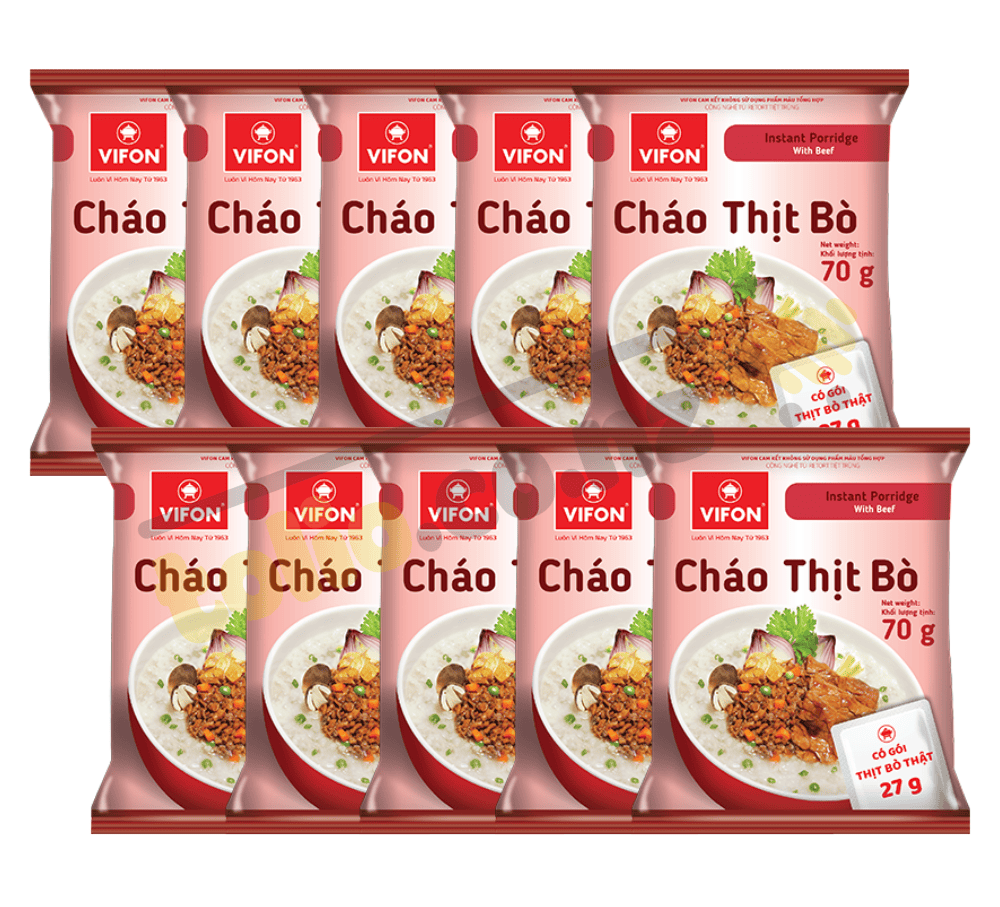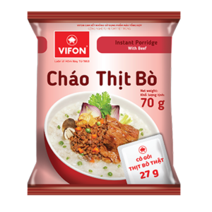 Cháo thịt bò Vifon 70g được làm từ các nguyên liệu tươi an toàn cho sức khỏe, đặc biệt có gói thịt bò thật chất lượng, thơm ngon, đủ dinh dưỡng cho một bữa ăn mà lại cực nhanh và đơn giản