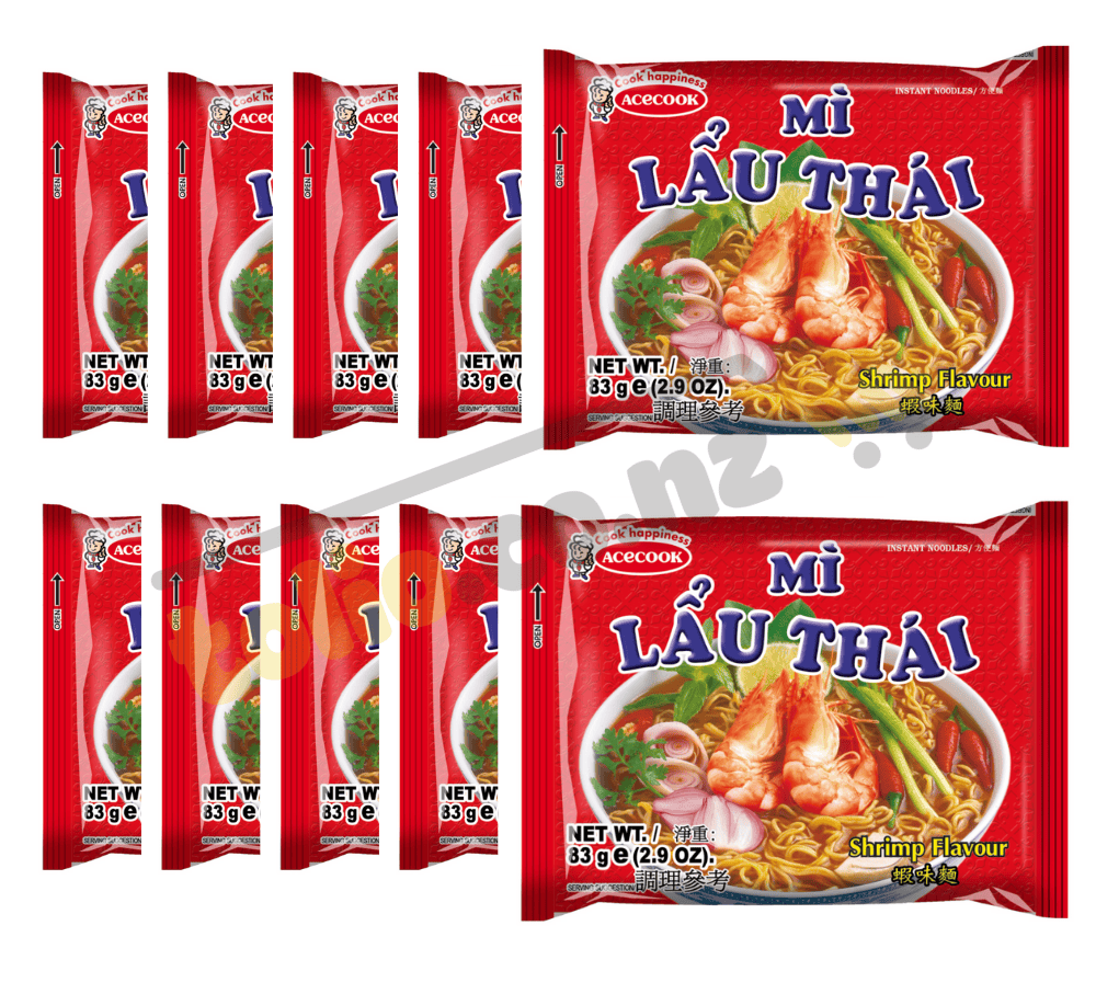 Set 10 gói mì Lẩu Thái tôm 83g được chế biến từ bột mì nguyên chất kết hợp với tôm, các loại rau củ quả tươi ngon, tẩm ướp gia vị hợp lý phù hợp với khẩu vị của người dân Việt Nam. Mì ăn liền Lẩu Thái tôm gói 80g dai giòn đậm đà vị rau củ tươi, của tôm hấp dẫn không thể bỏ qua