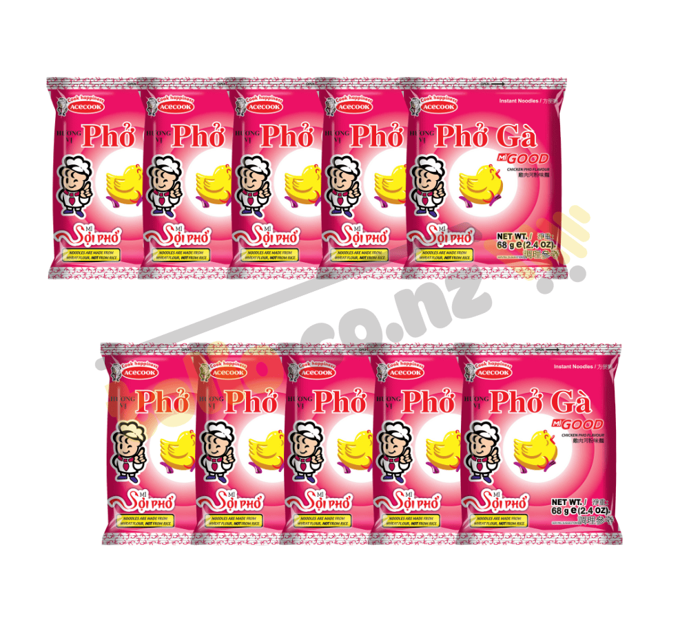 Set 10 gói mì phở gà Good 68g với sợi mì dạng phở, dai ngon độc đáo, cùng với nước súp ngọt thịt, thanh nhẹ, mùi thơm không quá nồng, đem lại cảm giác lạ lạ với sợi mì dạng phở, và quen quen của sợi phở làm người ăn nhớ lại những món ăn ngon truyền thống luôn được yêu thích.