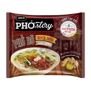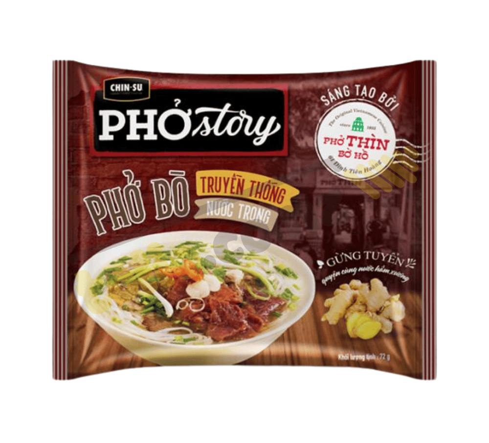 Thùng 30 gói phở Bò Chinsu Story 72g mang hương vị phở miền Nam, với nước dùng đậm đà từ xương, thơm mùi bò, mang lại món ngon đậm vị khó cưỡng.