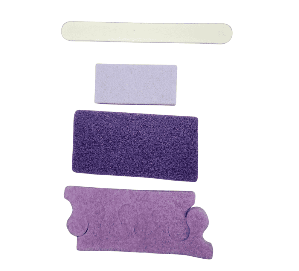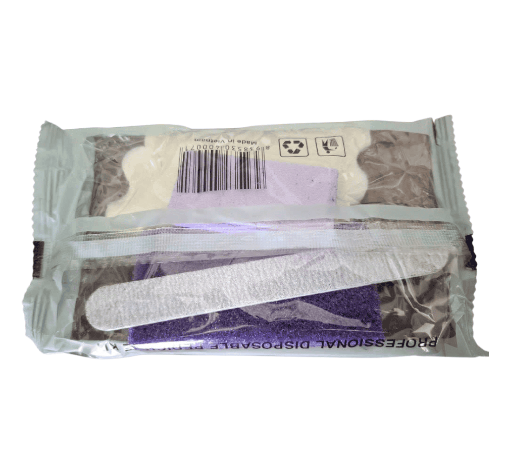 Bộ dụng cụ làm nail Pedicure Kit bao gồm buffer chà móng, pumice chà gót, file 5″ giũa và tách ngón PE là sản phẩm không thể thiếu trong ngành nail. Với thiết kế nhỏ gọn, thích hợp cho các tiệm nail, tiện lợi, đảm bảo vệ sinh.