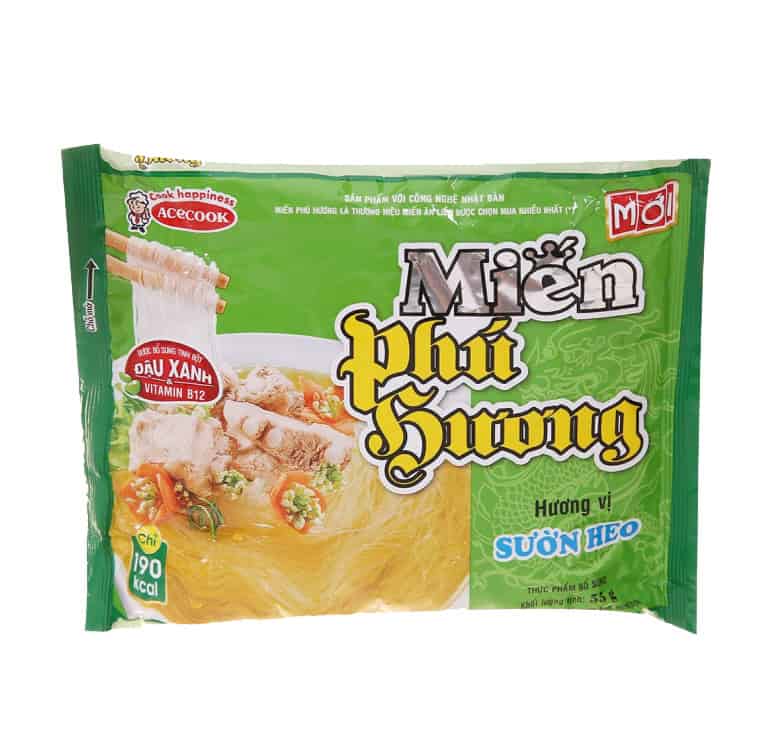 Là sản phẩm miến ăn liền tiện cho cho những ngày bận rộn cần một bữa ăn nhanh gọn và dinh dưỡng. Miến Phú Hương sườn heo gói 56g với sợi miến dai đặc biệt được bổ sung thêm tinh bột đậu xanh cùng nước súp Phú Hương vị sườn heo đậm đà cực quyến rũ hấp dẫn không thể chối từ