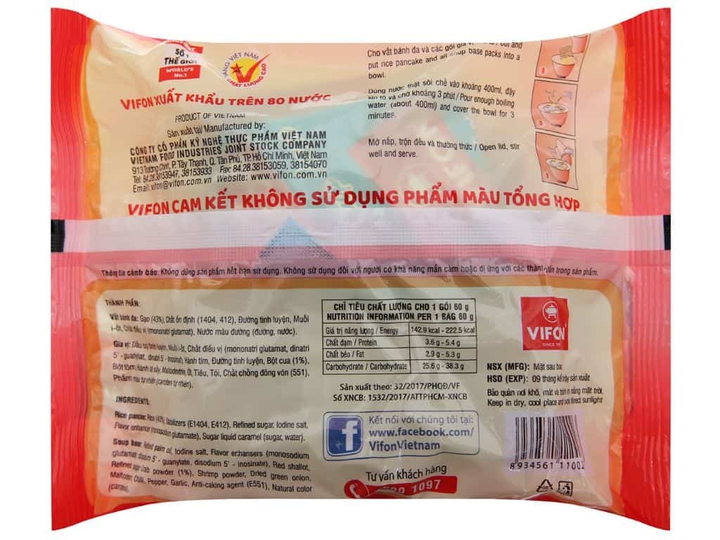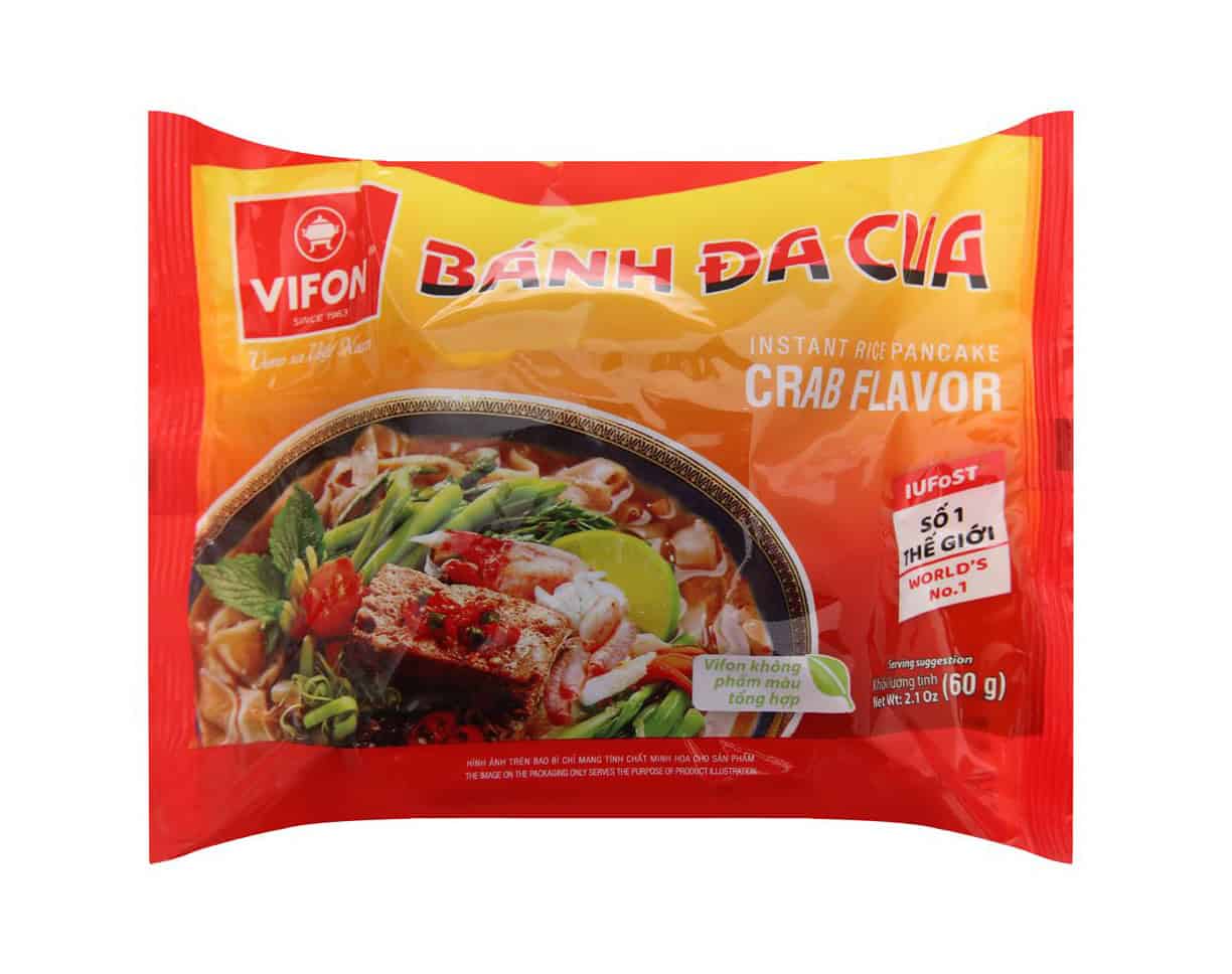 Bánh đa cua Vifon gói 60g từng sợi dai ngon hòa quyện trong nước súp Vifon hương vị riêu cua đậm đà, chất lượng cùng mùi hương hấp dẫn. Bánh đa cua Vifon gói 60g mang đến cho bạn bữa ăn tiện lợi nhanh chóng đơn giản mà vẫn đầy đủ dinh dưỡng. Sản phẩm cam kết chất lượng và an toàn