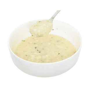 - Cho phôi cháo và gói gia vị vào tô. Dùng nước thật sôi chế vào khoảng 350ml, trộn đều. Đậy kín tô trong 3 phút. Mở nắp, cho gói thịt bằm vào, trộn đều và thưởng thức.