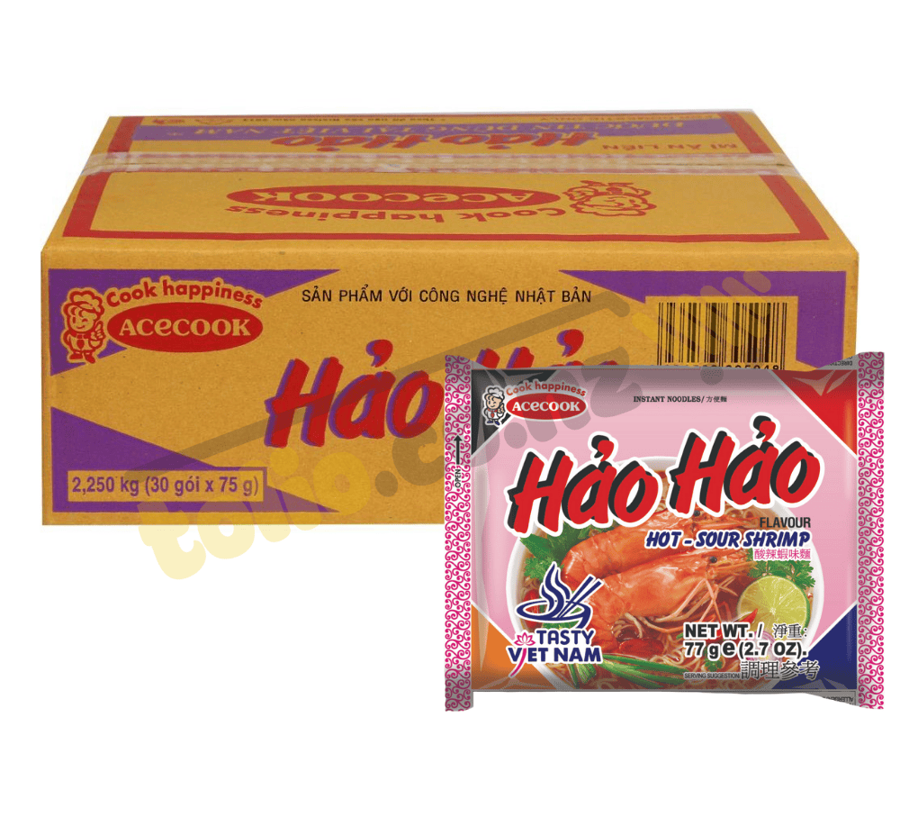 Thùng 30 gói mì Hảo Hảo tôm chua cay 77g với sợi mì dai ngon hòa quyện trong nước súp tôm chua cay, đậm đà chính hãng mì Hảo Hảo, hương thơm quyến rũ ngất ngây. Mì Hảo Hảo vị tôm chua cay gói 77g là lựa chọn hấp dẫn không thể bỏ qua đặc biệt là cho những ngày bận rộn cần bổ sung năng lượng nhanh chóng đơn giản mà vẫn đủ chất.