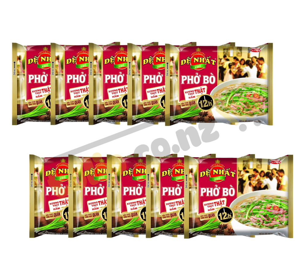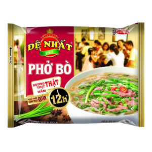 Thùng 30 gói phở Đệ Nhất hương vị bò 68g từng sợi phở dai ngon, trắng dẹp đậm đà nước dùng cho bạn thưởng thức tô phở thơm ngon với hương bò ngọt nước. Phở Đệ Nhất hương vị bò gói 84g chất lượng, dinh dưỡng nhanh gọn cho bữa sáng. Phở Đệ Nhất thơm ngon, tiện lợi và được nhiều người lựa chọn
