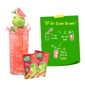 - Cho 1 gói 14g bột trà ổi hồng Wil vào ly cùng 80ml nước rồi cùng khuấy đều