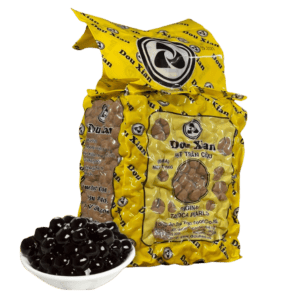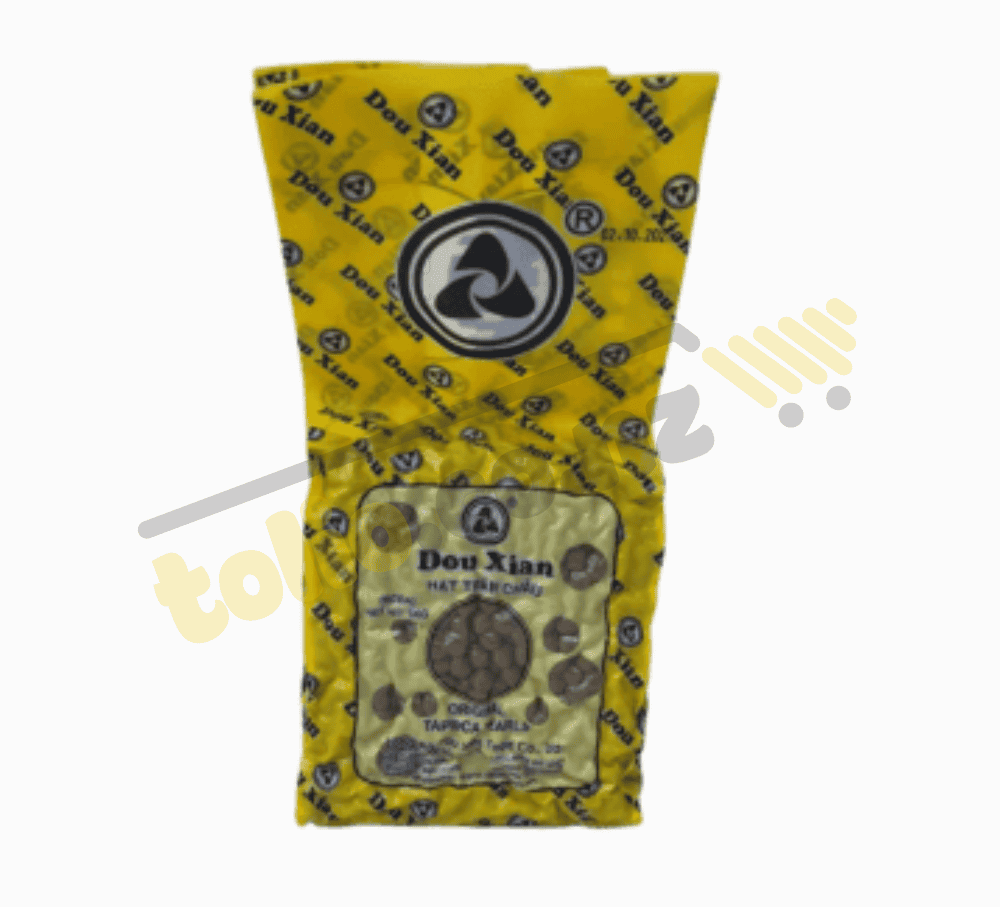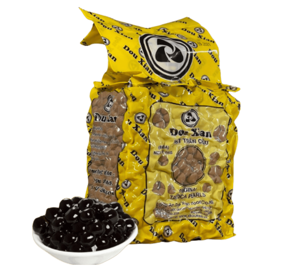 Trân châu đường đen Dou Xian túi 1kg hạt lớn 2.5 có thành phần gồm bột sắn,nước, màu caramel, hương liệu. Trân châu được dùng trong các món chè thập cẩm hoặc chè thái, sữa chua, đặc biệt trong trà sữa chân trâu.