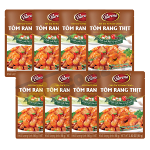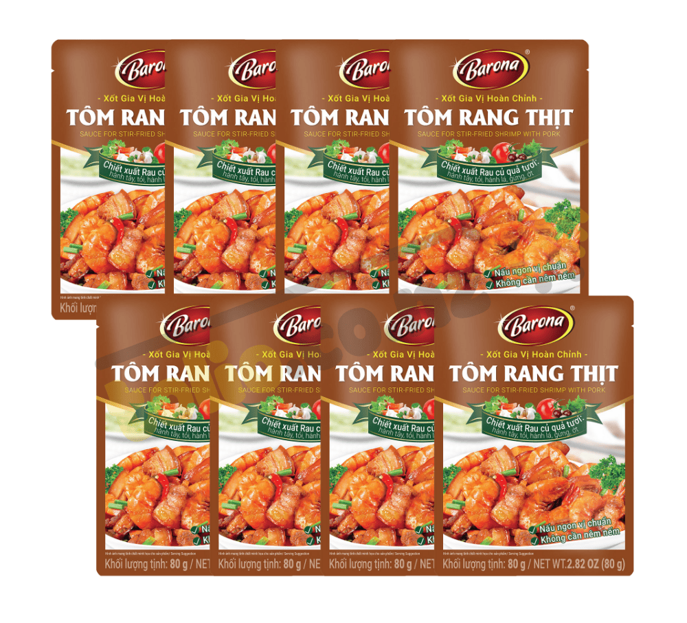 Xốt tôm rang thịt Barona 80g là loại gia vị nêm sẵn được chiết xuất từ rau củ quả tươi như hành tây, tỏi, gừng, ớt và các gia vị truyền thống, xốt tôm rang thịt Barona tạo nên món tôm rang thịt có hương vị tự nhiên, tươi ngon, khiến bữa ăn thêm hấp dẫn.